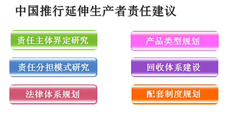 为更好的在我国推行延伸生产者责任,乔琦提出了如下建议:一是针对责任主体界定展开研究,提出适合我国EPR的主体界定范围;二是合理科学选择我国ERP责任模式;三是搭建我国ERP的法律体系;四是研究制定我国ERP的甄别原则和产品类型;五是研究制定回收管理条例和办法;六是研究制定我国EPR的多项配套管理条例和办法。