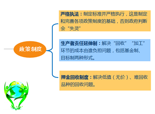 赵怀勇指出,要从严格执法、生产者责任延伸制、押金回收制度、税收政策、再生产品推广制度、集聚化发展等方面完善资源循环利用体系。
