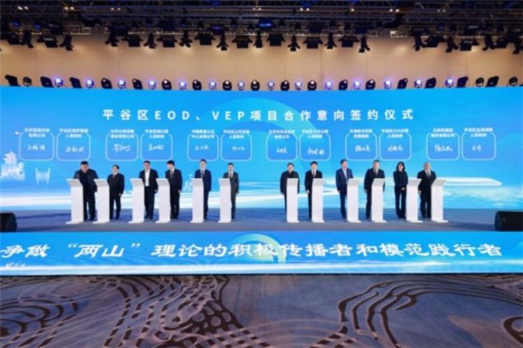 平谷区与“两山”理论诞生地浙江省湖州市签署《关于推进生态产品价值实现战略合作框架协议》,充分发挥各自在生态资源、产业基础、政策创新等方面的优势,围绕生态产业协同,生态产品交易市场建设,生态补偿机制创新,企业、人才、技术交流等方面共同探索生态产品价值实现的有效路径和模式,力争形成一批生态产品价值实现典型案例,积累成功经验,为全国生态文明建设提供示范。同时,平谷区与6家企业签署合作协议,聚焦VEP(生态产品价值实现)、EOD(生态环境导向开发)等项目落地,推动“生态治理+产业”“技术赋能+模式创新”深度融合。平谷区委书记唐海龙等领导为平谷区生态产品价值实现机制专家员会成员颁发聘书,汇聚国内外顶尖专家学者,建立“理论—政策—实践”三维联动创新高地,为健全生态产品价值实现机制、探索生态优先绿色发展实践路径提供全周期智力支持。